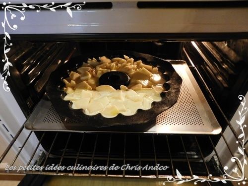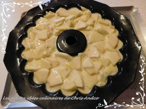 - Déposer les quartiers de pommes dans un moule (on a pris le moule à savarin Guy Demarle) et verser la pâte liquide afin de recouvrir toutes vos pommes.