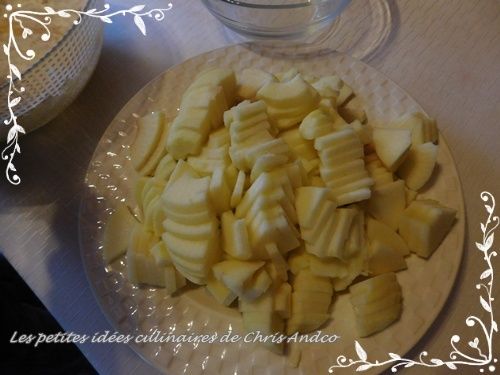 - Peler les pommes et les couper en petits morceaux (on a utilisé mon éplucheur à pommes).
